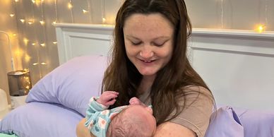 This was our first pregnancy and prior to getting pregnant my husband and I talked extensively about home birth- being in the comfort of our home with the people we love and building a team that cares for us. We were so blessed to find Jenny (thank you instagram). She was our safe place, she listened to all of our questions, let us make every decision, gave options and education material, informed consent, and when it came to the birth of our daughter, her and Paige were nothing short of amazing! Our sweet baby girl was born on her due date! I felt comfortable, confident and empowered. My husband and I were able to labor exactly how we wanted, Jenny and Paige gave us space to let my body work and when I needed a little help Jenny was there with suggestions for new positions or the peanut ball (taking me from 5cm to 10cm in 45 minutes).. when it came to pushing I wasn’t coached, I wasn’t told to wait, I wasn’t told “not yet”. Jenny supported me in every capacity again letting my body do the work. Just as it was designed by God to do. After Eisley was born we had our magical golden hour right in bed, Delayed cord clamping, Brendan had skin to skin while our bath was prepared and Eisley and I got to bond even further in the herbal bath. Jenny helped with breast feeding/latching and different positions. Our room was cleaned all while we were soaking up newborn snuggles in bed.